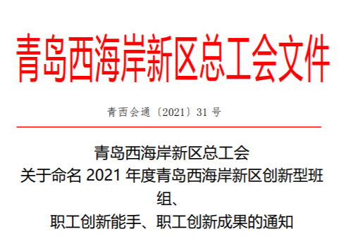 近日,青岛西海岸新区总工会发布通知,公布“2021年度青岛西海岸新区创新型班组、职工创新能手、职工创新成果”评选情况,公司工程技术研究中心荣获新区创新型班组殊荣,该部门副主任吕灵灵、副主任工程师仉杰当选新区职工创新能手。[ 查看更多 ]