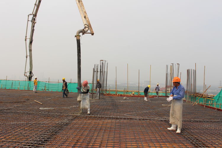 在施工单位的带领下,公司领导来到分子筛厂房顶层参观建设情况。分子筛厂房建筑面积22308㎡,是整个项目中面积最大、工程量最大、施工难度最大,设计、工艺最复杂的建筑单体。在台风、高温极端天气及交叉作业、疫情等诸多不利因素影响下,为加快推进建设进程,项目建设指挥部全体成员放弃节假日休息,以“5+2”、“白+黑”的战斗精神,全部深入一线进行质量检查和安全督导,他们迎难而上、披荆斩棘,是收米app官网精神的真实写照;施工单位增加人员、机械设备,安排工人三班倒作业,保证施工现场24小时不停工;监理、勘察、造价等参建单位加班加点,“随叫随到,不叫也到”......各方精诚合作,共同推进,终于迎来了8月10日这一封顶时刻。